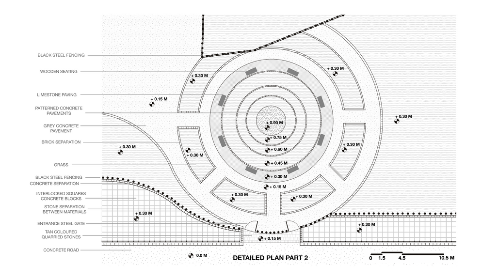 So this design proposal creates the major guiding axis on the site according to movement patterns , spread of activities on the site to its maximum potential , incorporating the change of levels according to functions and experiential qualities. This design proposal aims to retain the maximum existing trees on the site as well.